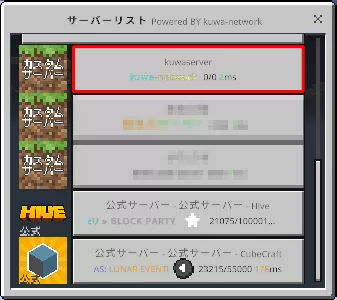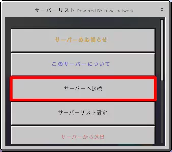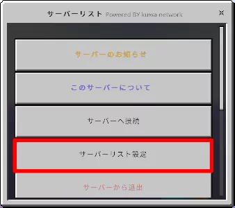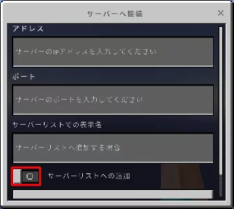 画像で囲まれているサーバーリスト絵の追加をONにするとサーバーリストにサーバーが追加されます。